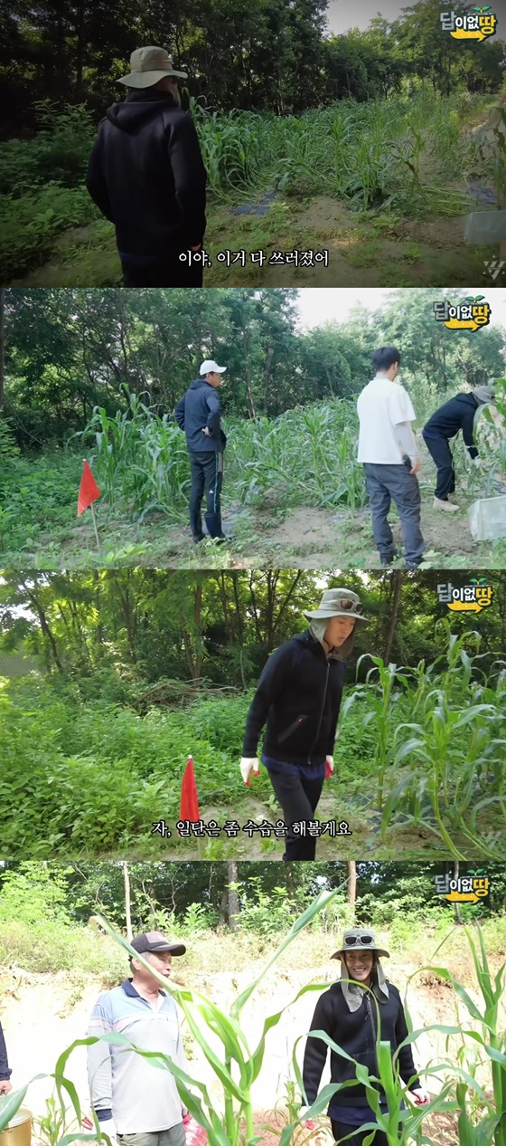 이날 그는 장마 피해로 인해 다 쓰러진 옥수수밭을 보며 말을 잇지 못했다. 그는 "이번 주 장마가 와서 옥수수가 처참하게 쓰러졌다. 일단 수습해 보겠다. 강한 것만 키우겠다"라며 수습에 나섰다.
