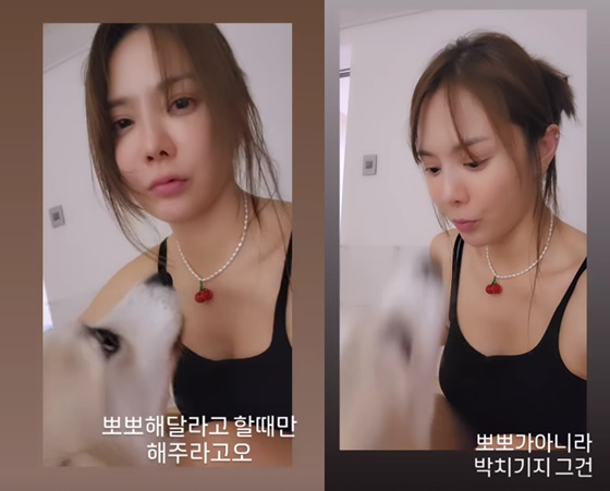 21일 유하나는 "뽀뽀해 달라고 할 때만 해주라고"라며 반려견과 함께하는 행복한 일상생활을 공유했다.