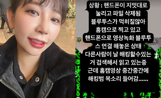 이어 "다른 사람이 날 해킹할 수 있는 거 검색해서 읽고 있는 중. 근데 홈캠 영상 중간중간 해킹범 목소리 들어감"이라고 덧붙였다.