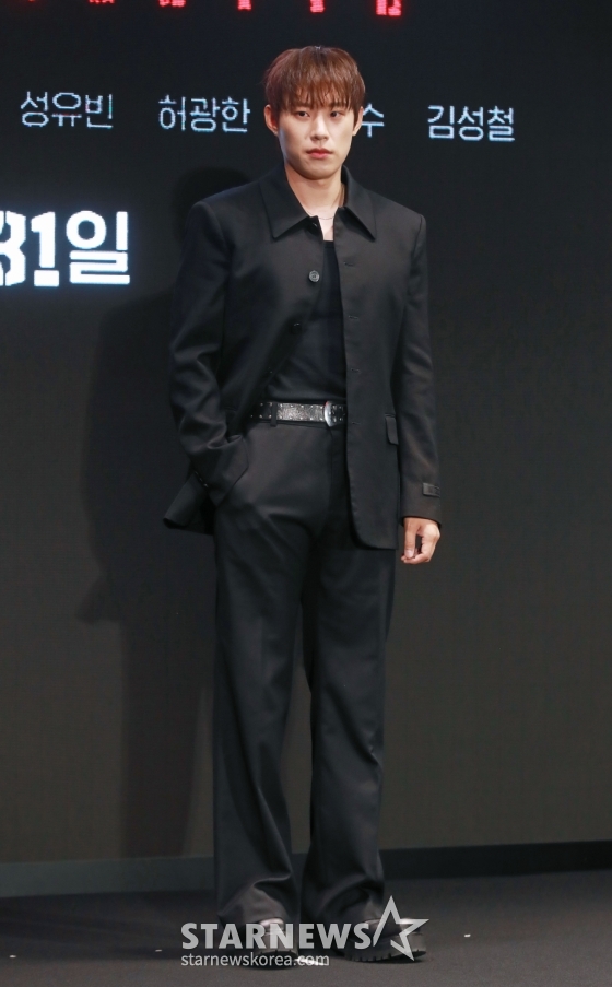 배우 김성철이 24일 오전 서울 여의도 콘래드 호텔에서 진행된 디즈니+ 오리지널 시리즈 '노웨이아웃: 더 룰렛' 제작발표회에 참석해 포즈를 취하고 있다.