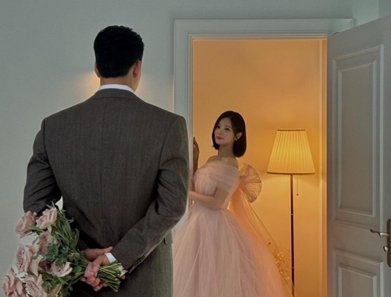 공개된 사진 속 소희는 핑크빛 드레스를 입고 예비 신랑을 바라보고 있다. 단발머리의 청순한 비주얼이 눈길을 끈다. 아울러 넓은 어깨와 다부진 체격의 비연예인 남편의 뒷모습이 공개됐다.