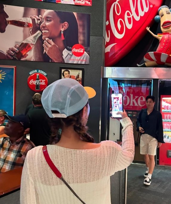 사진에서 신지는 미국 투어를 소화하고 있음을 인증하고 있다.