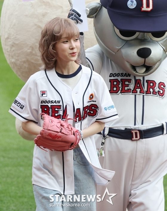 25일 서울시 송파구 잠실야구장에서 두산 베어스와 키움 히어로즈의 경기가 열렸다. 이날 그룹 에스파 윈터가 시구자로 등장했다.
