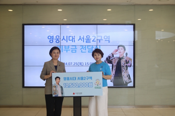 '영웅시대 서울2구역방'은 2021년부터 서울 사랑의열매와 꾸준히 인연을 이어오며 나눔리더스클럽에 가입했으며 지난 1월 착한팬클럽 서울 2호 가입해 나눔을 선도적으로 이끌고 있다. '영웅시대 서울2구역방'의 기부금은 총 4408만 3300원에 이른다.