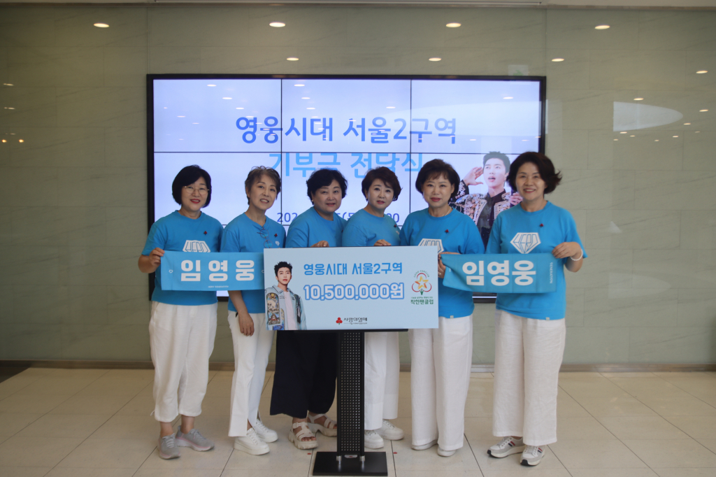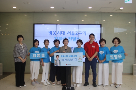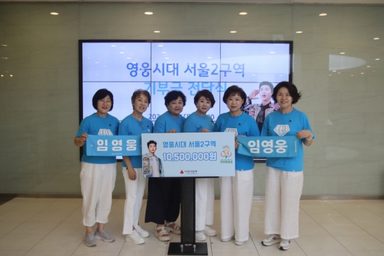 임영웅 팬클럽 '영웅시대 서울2구역방'(방장 이현정)은 임영웅의 데뷔 8주년(8월 8일)을 기념해 사랑의열매 서울 사회복지공동모금회(회장 김재록)에 1050만 원을 기부했다.