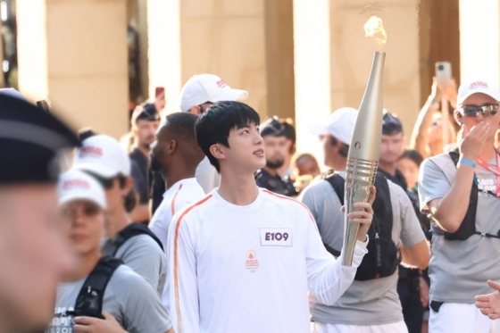 진은 현지 시각 지난 14일 프랑스 파리에서 진행된 '2024 파리 하계 올림픽' 성화 봉송에 주자로 참여했다.