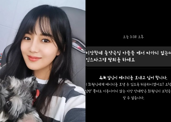 여기엔 "미안한데 '솔약국집 아들들'에서 싸가지 없는데 인스타그램 탈퇴를 하세요"라는 폭언이 담겨 눈살을 찌푸리게 했다.