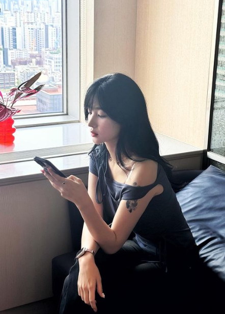 또한 율희는 왼쪽 팔뚝에 새겨진 타투도 숨기지 않고 있다.