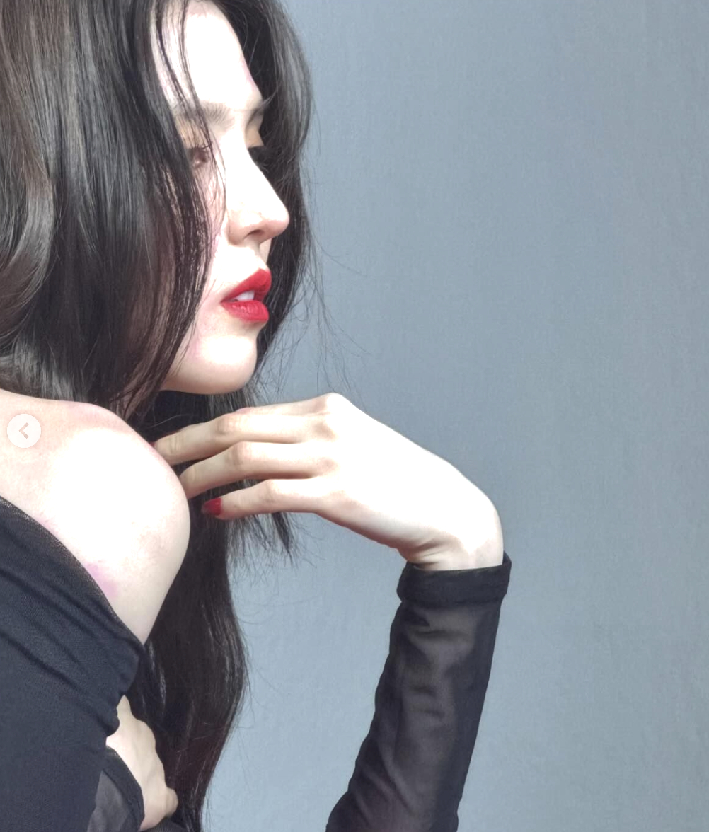 공개된 사진 속 한서희는 레드 립과 레드 원피스로 포인트를 준 의상을 입은 채 카메라 앞에서 포즈를 취하고 있다. 또 다른 사진에서는 어깨 라인이 돋보이는 시스루 블랙 드레스로 퇴폐미를 뽐내고 있다. 트인 어깨 사이로 보이는 타투가 지워진 흔적이 보는 이들의 시선을 사로잡는다.