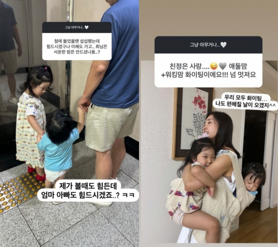 그는 '애둘맘', '워킹맘'을 응원하는 말에 "우리 모두 화이팅"이라며 "나도 편해질 날이 오겠지"라고 스스로를 응원했다. 공개한 사진 속에는 두 아이를 앞뒤로 업고 있는 최희의 모습이 담겨 눈길을 끌었다.