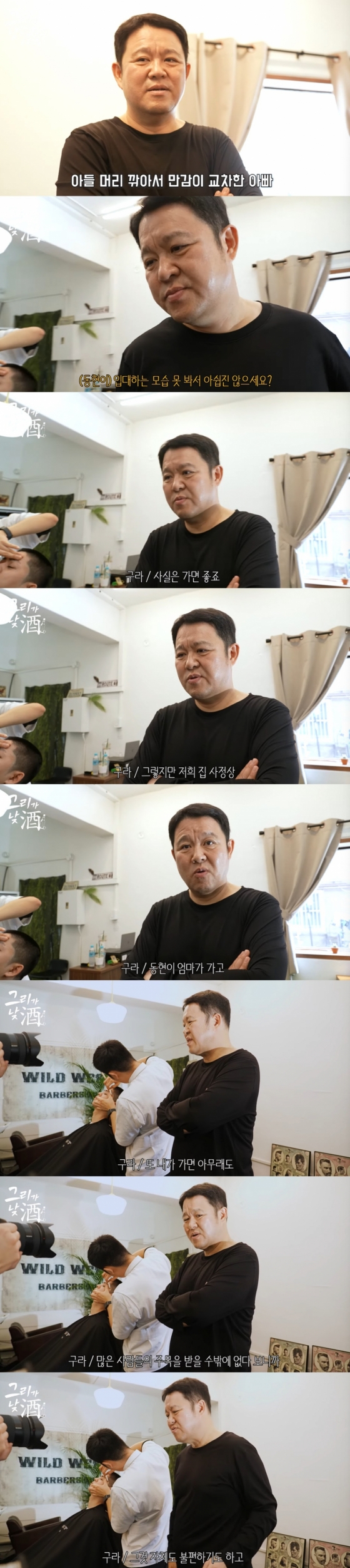 김구라는 그리의 풍성한 머리숱을 보며 전처를 언급하기도 했다. 그는 "머리 깎으니까 잘 어울린다. 머리 숱이 엄청 많다. 이런 말씀드리기 그렇지만 외탁이다. 외삼촌, 엄마가 엄청나게 머리숱이 많다. 머리숱으로는 너 진짜 거의 상위 랭커다. 머리숱 많다고 자기가 관리 안 하고 술 마시고 그러면 잘 빠진다. 머리에 가장 안 좋은 게 음주다. 얼마 전에 신문 보니까 사망률 1위가 심혈관 질환이고 가장 영향을 미치는 게 고지혈증이라더라. 10대도 요즘 고지혈증이 걸린다. 이렇게 머리 빡빡한 사람도 술 많이 먹고 음식 같은 거 신경 안 쓰면 얇아진다"라며 그리의 건강을 걱정했다.