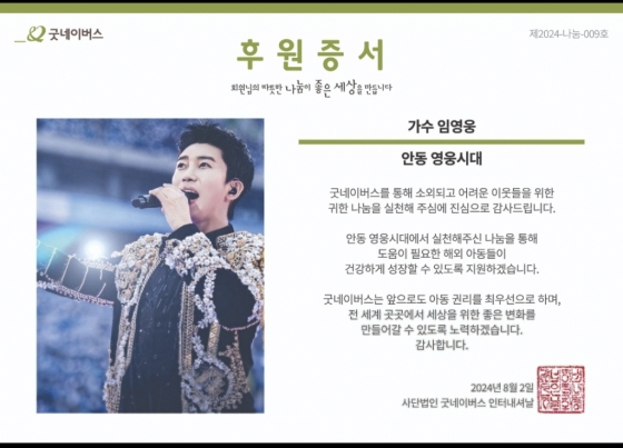 한편 '안동 영웅시대'는 올해 누적 401만 4082만 원을 굿네이버스에 기부하는 등 임영웅의 선한 영향력 실천에 앞장서고 있다.