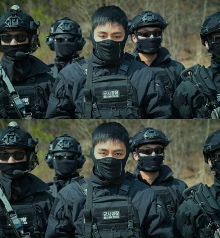 이틀이 지난 뒤 식당에서 밥을 먹고 부대원들을 기다리고 있으면서도 뷔의 신발을 찾기 위해 땅만 보고 있었는데 마침 뷔의 신발을 발견했다며 "뷔가 마스크를 쓰고 있었는데 눈이 엄청 커요. 실례인데도 엄청 빤히 쳐다보게 된다"며 당시의 상황을 흥미진진하게 말했다.