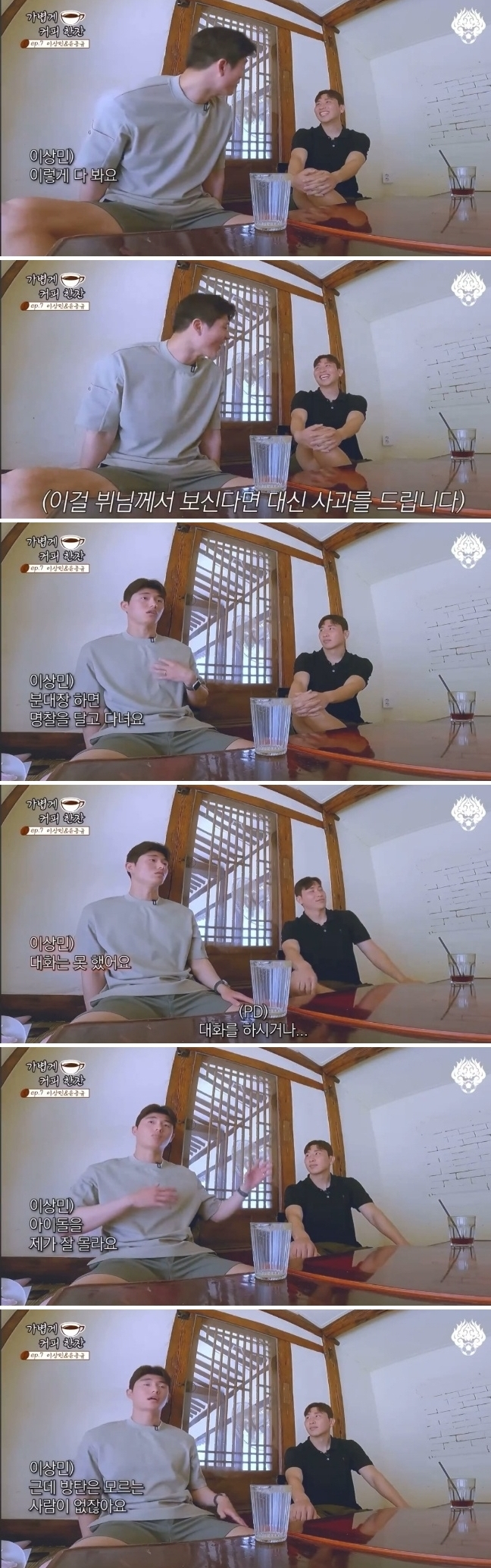이상민은 "'뷔 만남 썰'을 썸네일로 하면 조회수가 많이 나오겠는데요. 다른 훈련 얘기는 재미 없어하시더니 뷔를 만났다하니 관심있게 들으시네요"라고하자 제작진들도 "재밌네요"라며 크게 만족해했다.