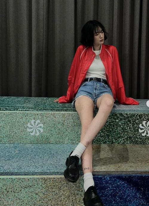 그는 빨간 재킷에 숏팬츠를 입고 힙한 캐주얼을 선보였다. 최근 전신에 했던 타투를 지우고 있다고 밝힌 나나는 아직 발목에 타투가 남아있어 눈길을 끌었다.