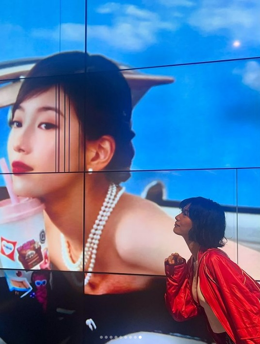나나는 수지의 광고 전광판 앞에서 포즈를 취하며 장난기를 발휘하기도 했다.
