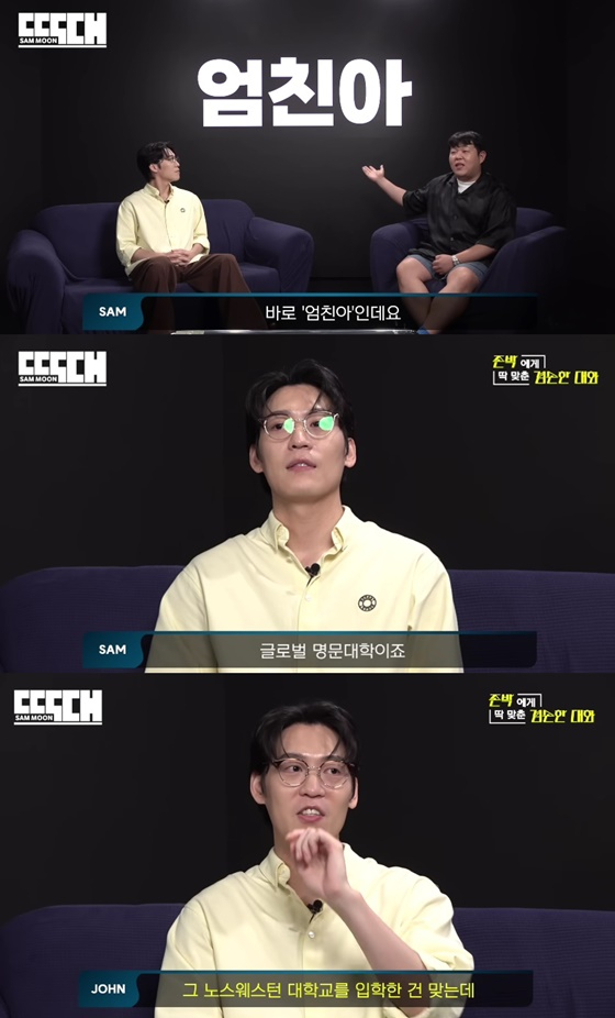 문상훈은 "존박 하면 절대 빠지지 않는 키워드가 하나 있다. 바로 '엄친아'다. 갖고 계신 거에 비해서 굉장히 겸손한 걸로 유명하다"라고 말했다. 이에 존박은 "과찬이다"라고 했다.