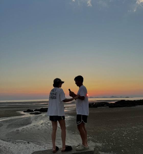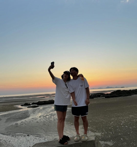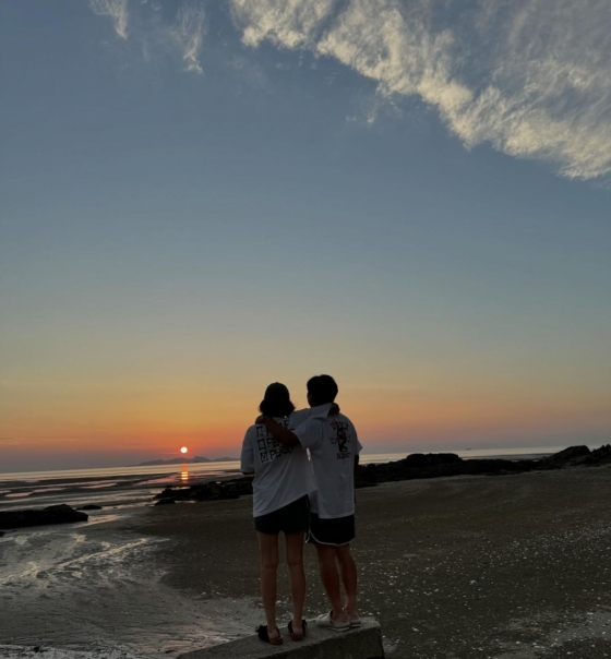 사진 속 손담비와 이규혁은 바닷가에서 노을을 바라보며 어깨동무를 하고 있는 모습. 두 사람은 해가 지고 있는 바다를 배경으로 셀카를 찍는가 하면, 서로를 바라본 후 해맑게 웃으며 남다른 애정을 드러냈다.