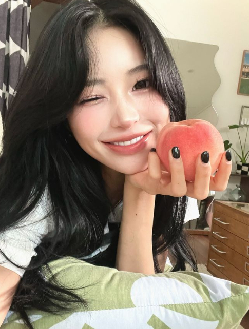 사진에서 최준희는 복숭아를 들고 윙크 포즈를 취하며 엄마인 최진실의 전성기 시절 외모를 떠오르게 하고 있다.