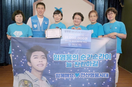 임영웅 팬클럽 '함께해요 안산 영웅시대'는 임영웅 데뷔 8주년(8월 8일)을 기념해 공익법인 '희망을 파는 사람들'에 후원금 1100만 원을 기부했다고 6일 밝혔다.