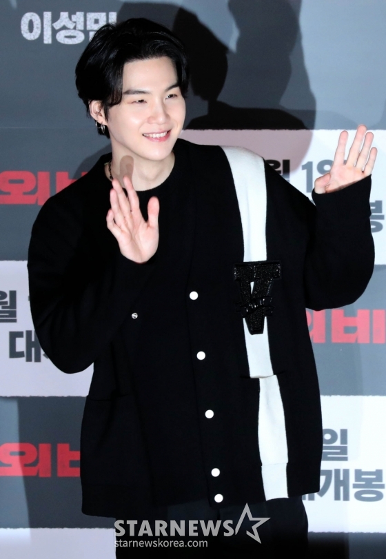 한편 슈가는 지난 2013년 방탄소년단 멤버로 데뷔했다. 슈가는 지난 3월 논산훈련소에 입소해 현재 사회복무요원으로 근무 중이다. 그가 사회복무요원으로 배정된 구체적인 이유는 밝혀진 바 없다. 다만 슈가가 2020년 어깨 부위의 파열된 관절와순을 봉합하는 수술을 받은 바 있어 이와 관련된 것이라 추측하고 있다. 슈가는 내년 6월 소집해제 예정이다.