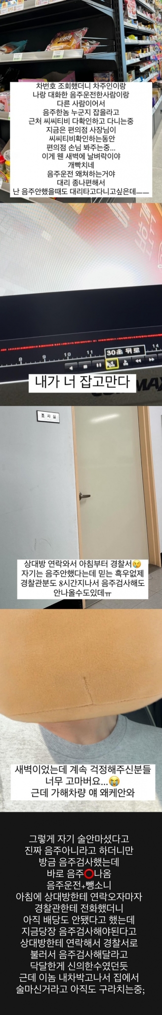 결국 하루 뒤 음주 측정이 진행되긴 했으나, 가해자는 "차를 박고 난 뒤 술을 마셨다"라는 주장을 펼치고 있는 상황이라고.