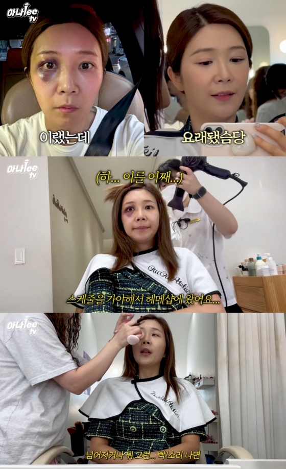 지난 8일 유튜브 채널 '아나lee TV'에는 "남편한테 맞았다고 오해받은 눈탱이 밤탱이 커버 메이크업(vlog,기록)"란 제목의 영상이 게재됐다.