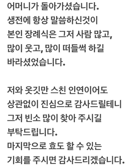 이어 "연세 신촌 세브란스 병원 장례식장 6호실 상주 유재환 올림. 발인 12일입니다. 주말동안 많은 방문 부탁드립니다. 모든분께 연락드리지 못해 죄송합니다"라고 전했다.