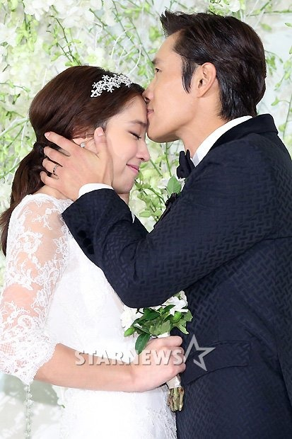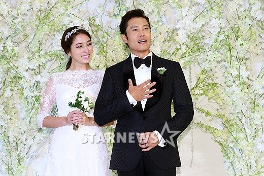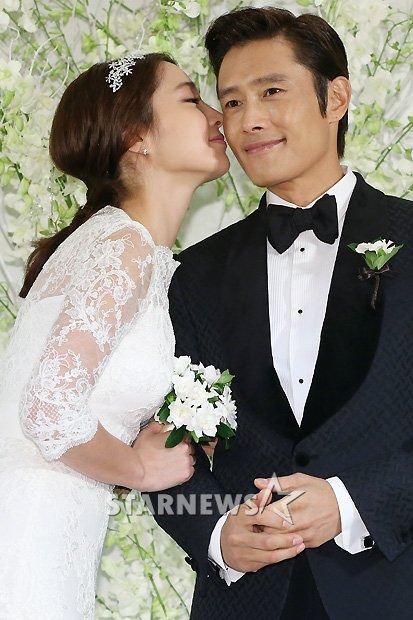 이민정은 10일 자신의 SNS에 별다른 코멘트 없이 11년 전 이병헌과 결혼 당시 사진을 공개했다. 사진 속 이민정은 순백의 웨딩드레스를 입고 있고, 이병헌은 블랙 턱시도를 차려입고 미소를 짓고 있다. 11년 전인 만큼 부부의 앳된 모습에서 시작의 설렘이 묻어난다.