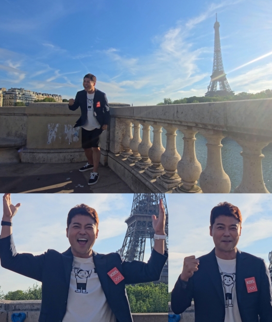 'KBS 역도 캐스터'로 프랑스 파리 현지에 간 전현무가 에펠탑 앞에서 "박혜정 파이팅"을 소리 높여 외쳤다.