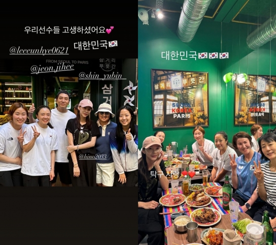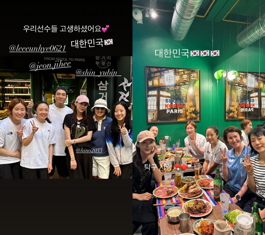 차예련은 "탁구 사랑"이라는 글과 함께 또 다른 사진을 공개했으며, 그는 신유빈, 전지희, 이은혜와 함께 한식당에서 함께 식사하며 올림픽 메달 획득을 축하한 것으로 보인다. 앞서 차예련은 지난 10일 남편 주상욱과 함께 프랑스 파리 사우스 파리 아레나에서 열린 2024 파리 올림픽 탁구 여자 단체전 동메달 결정전을 직관했다고 전했다.