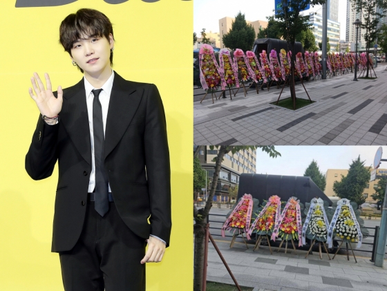 "BTS 탈퇴로 사죄해" 슈가, 음주운전 후폭풍..하이브 앞 화환 시위 [스타이슈]