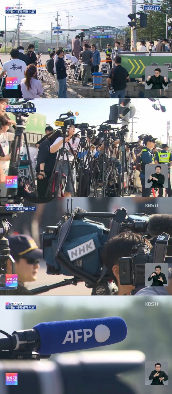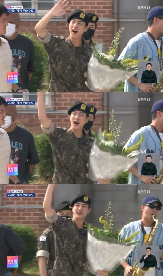 지난 8월 15일 제79주년 광복절을 맞이해 KBS '뉴스9'는 '문화 수도 '대한민국'…세계가 주목한 'K-소프트파워''를 소개했다. 해당 영상에는 전역 후 팬미팅을 통해 팬을 만나는 방탄소년단 진과 드라마 오징어 게임 등 전 세계에서 주목받고 있는 K-콘텐츠의 모습이 담겼다.