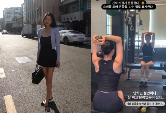 장윤주는 20일 자신의 인스타그램에 "진짜 지겹게 운동한다. 스케줄 표에 운동을 나는 일로 표시한다"라는 글과 함께 영상을 공개했다.