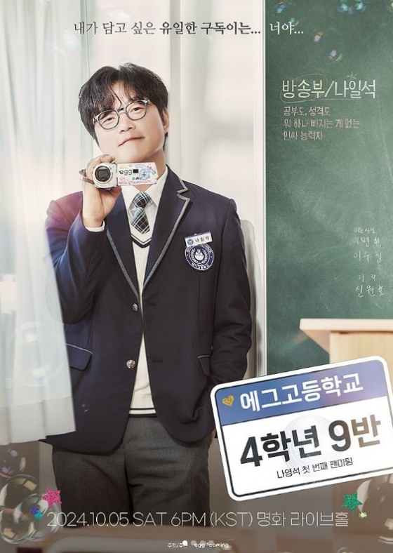 에그이즈커밍은 이날 공식 SNS 계정을 통해 "에그고 전설의 선배들을 소개합니다"라는 글과 함께 팬 미팅 포스터를 공개해 눈길을 끌었다. 팬 미팅 타이틀은 '에그고등학교 4학년 9반 - 나영석 첫 번째 팬미팅'이다.