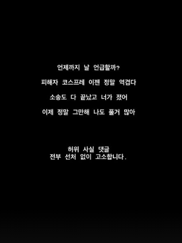 허위사실 댓글 전부 선처 없이 고소합니다.