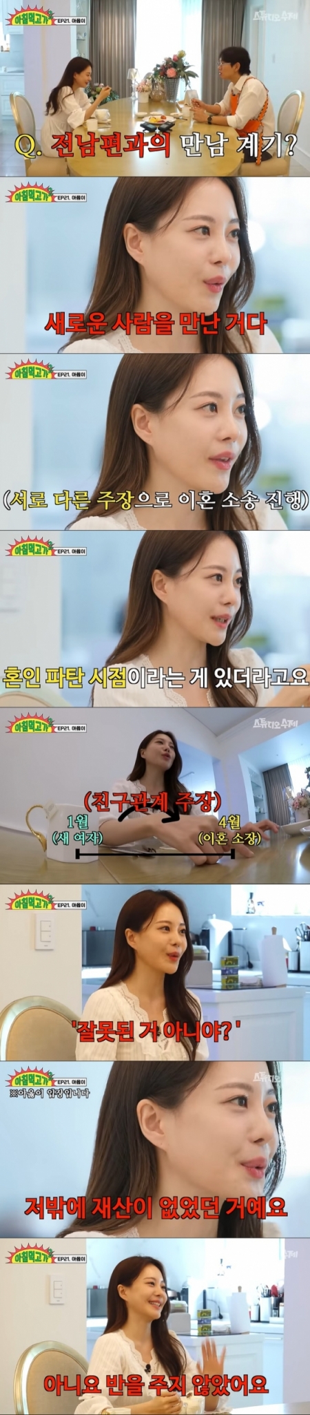 그는 "사실 결혼 비용보다 헤어질 때 비용이 더 들었다"라며 "(서주원이) 재산분할을 크게 요구했다. 나는 절대 그렇게 못 준다는 입장이었다. 재산분할은 귀책사유가 상관이 없었다. 재산분할은 서로의 재산을 합쳐서 반을 나누는 것인데, 저밖에 재산이 없었다. '나는 그건 아닌 것 같다'라고 해서 (이혼) 과정이 길어졌다"고 말했다.