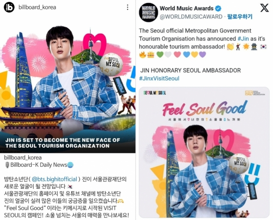이미 지난 20일부터 서울관광재단(Visit Seoul)의 각 SNS 공식 계정 헤더가 모두 진으로 꾸며졌으며. 공식 홈페이지의 메인에는 진의 포스터가 등장했다.