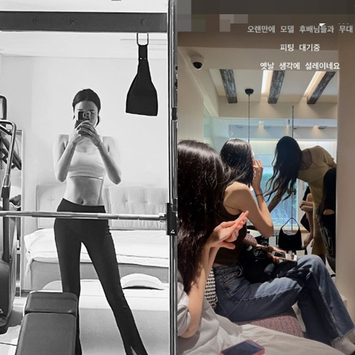 진아름은 22일 "오랜만에 모델 후배님들과 무대. 피팅 대기중. 옛날 생각에 설레이네요"라는 글과 근황 사진을 전했다.