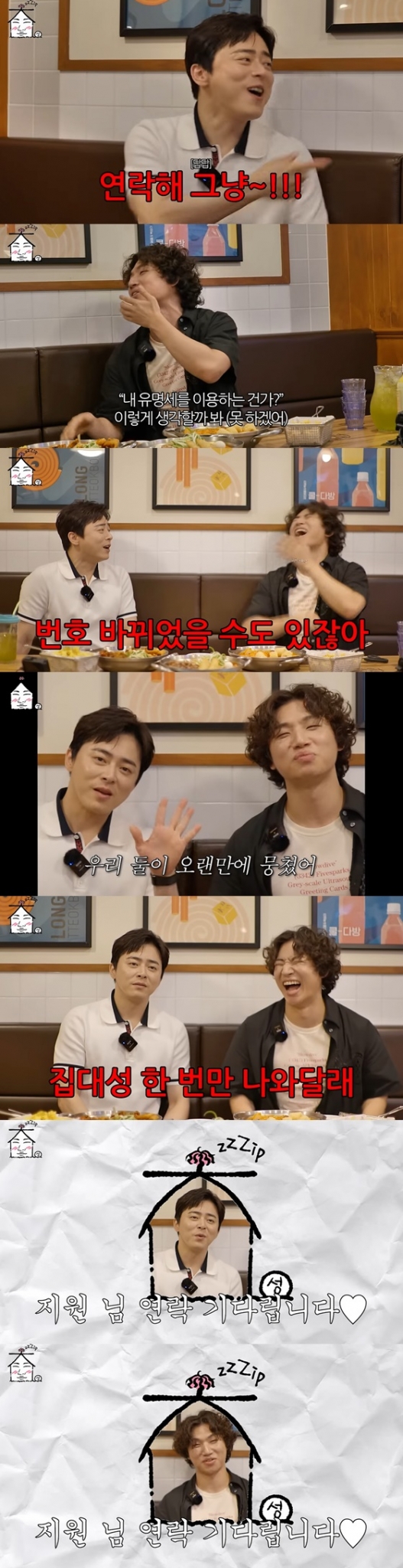 이에 조정석은 "그래도 해 봐. 지원이 전화번호 바뀌었을 수도 있잖아"라고 짓궂게 놀렸다.