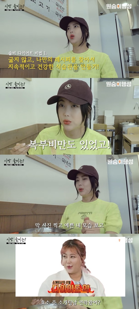 이날 솔비는 "다이어트할 때 안 먹는 게 더 문제"라며 "코올슬로 소스에 샐러리도 먹는다. 중요한 건 맛 없이 먹는 거보다 소스 맛있게 많이 먹는 게 낫다. 간식 먹을 때도 사탕 과자보다 오이에 초고추장, 쌈장 찍어 먹는 게 낫다"고 말했다.