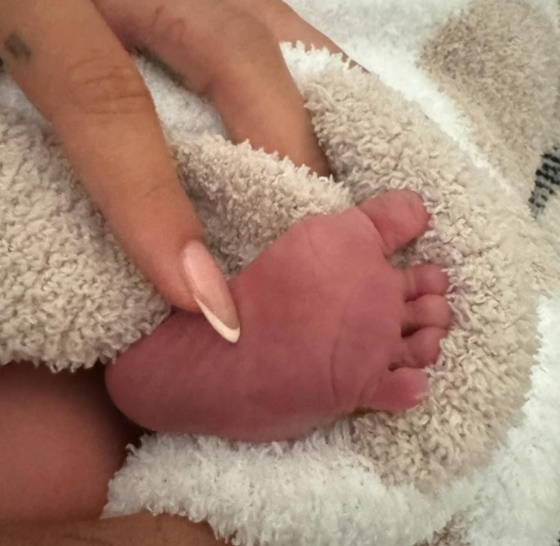 공개된 사진 속에는 저스틴 비버의 2세인 아기의 발이 담겨 있어 눈길을 끈다. 아내 헤일리가 아기의 발을 소중하게 만지고 있는 모습이다.