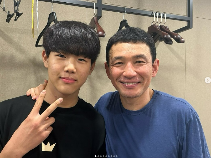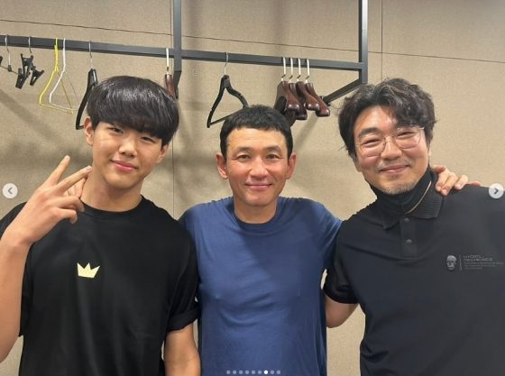 사진에는 이종혁과 이준수 부자가 연극 '맥베스'를 관람한 후 주연배우 황정민과 대기실에서 만난 모습이 있었다.