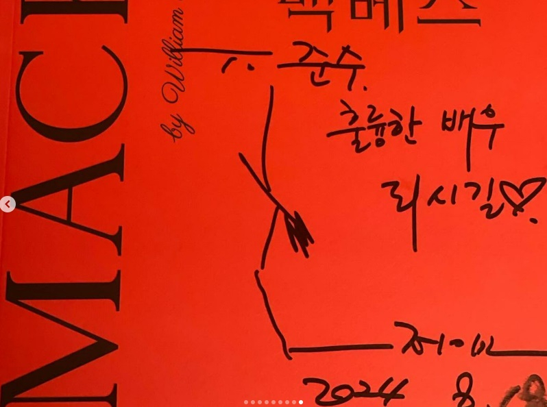 이들은 어깨동무를 하며 환한 미소로 인증샷을 남겼다. 이준수는 황정민에게 "훌륭한 배우 되시길"이란 메시지와 함께 사인을 받고 인증하기도 했다.