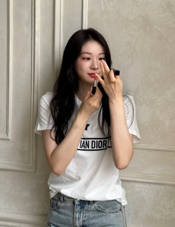 이날 김연아가 공개한 사진에는 흰 티셔츠에 청바지를 매치한 그의 모습이 담겼다.