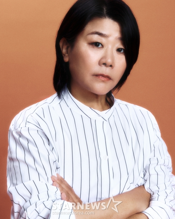 배우 이정은이 27일 오전 진행된 넷플릭스 오리지널 시리즈 '아무도 없는 숲속에서' 라운드 인터뷰에 앞서 포즈를 취하고 있다. 사진=넷플릭스 제공 2024.08.27 /사진=임성균