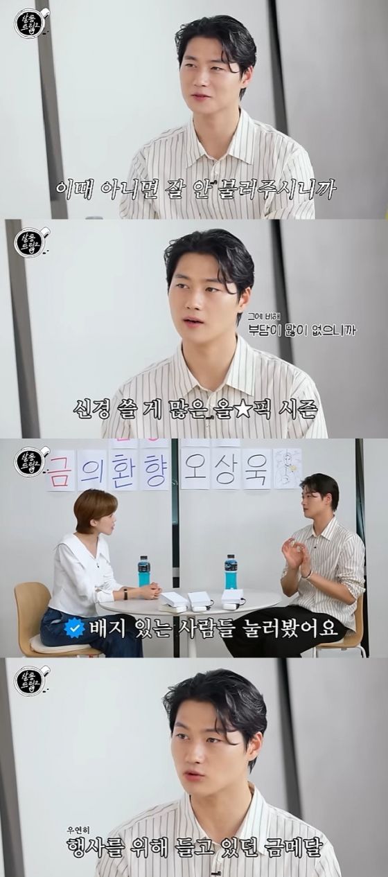 특히 오상욱은 "본업 칭찬도 좋은데 '잘생겼다'라는 외모 칭찬이 기분 좋다. 어떻게 보면 부모님의 성과다. 제가 아버지와 똑같이 생겼다"며 "SNS 팔로워 수는 많이 늘긴 했고, DM도 많이 왔다. 응원 글이 많이 왔는데 '할 줄 알았다'라는 메시지가 가장 감동이었다. 메시지가 온 사람 중에 파란 배지 있는 사람들은 눌러봤다. 팔로워가 엄청 많은데도 누군지 모르겠더라"라고 말했다.