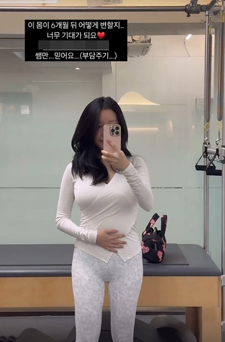 그는 "이 몸이 6개월 뒤 어떻게 변할지... 너무 기대가 돼요. 쌤만... 믿어요...(부담 주기...)"라고 덧붙이며 필라테스복을 입은 모습을 공개했다.