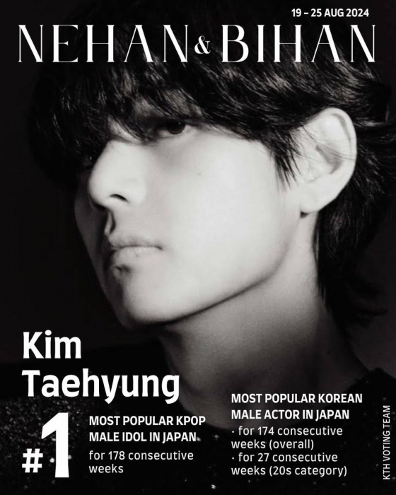 뷔는 8월 19일부터 8월 25일까지 일본 인기 아이돌 랭킹 사이트 '네한'(NEHAN)에서 진행한 남자 아이돌 랭킹 투표에서 178주 연속 1위를 차지하는 대기록을 경신했다.