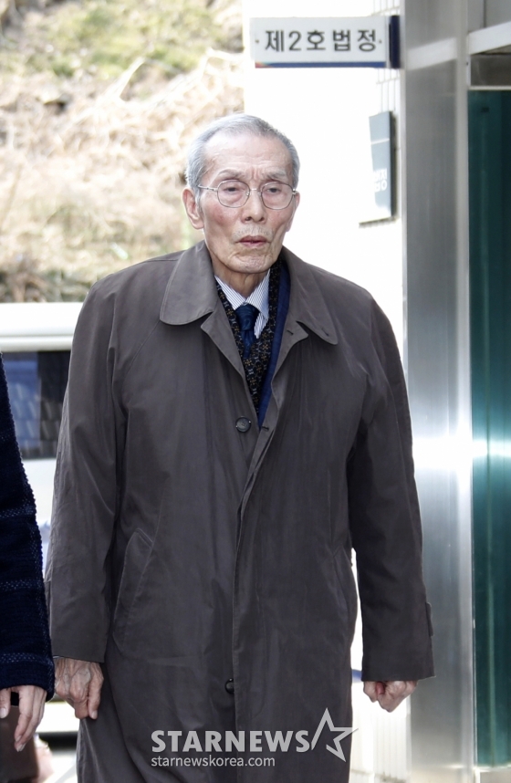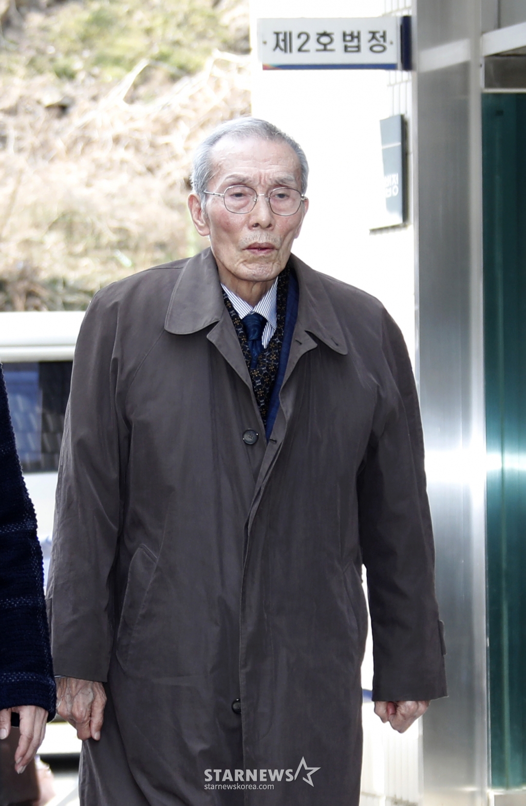 이날 회색 정장 차림으로 등장한 오영수는 재판부가 직업을 묻자 "연예인"이라고 짧게 답했다.